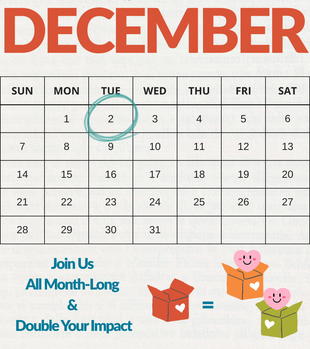 Your gift TODAY will help us make a greater impact in December…and beyond.