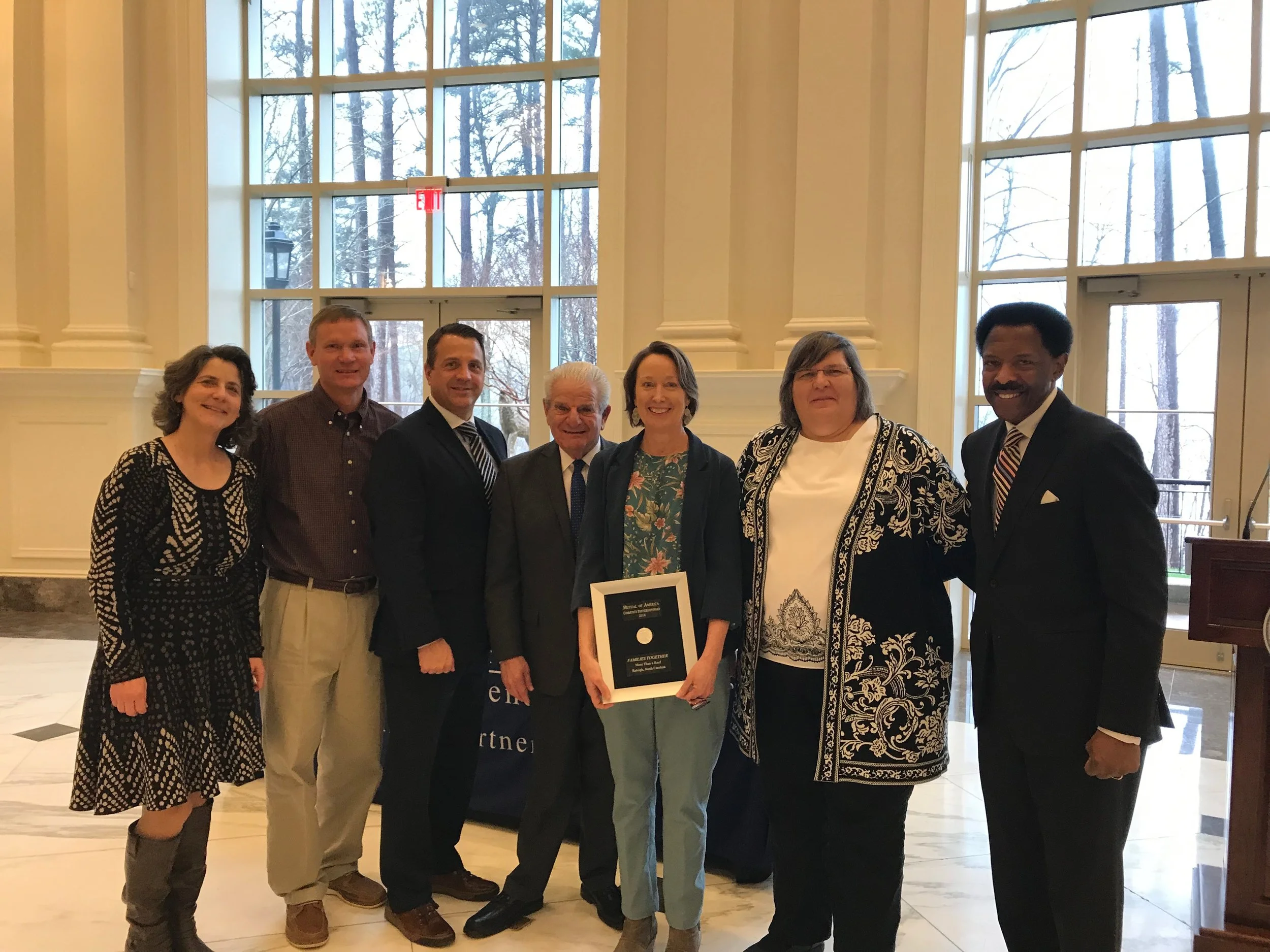 Living in a motel brings its own set of challenges that prevent people from obtaining stable housing. That's why in 2016 we partnered with other local organizations to specifically target this unique population of families through the More Than a Roof Collaborative. Since its inception MTAR has successfully housed over thirty Wake County families with young children. Recently, Mutual of America held a luncheon at The State Club to honor the wonderful people who worked so hard to make MTAR a success. We were joined by 80 guests from across the community including Board members, former Board members, donors, member churches, corporate partners, foundation partners and elected officials. It was wonderful to receive the recognition along with our partners in the MTAR collaborative -- Catholic Charities of the Diocese of Raleigh, Learning Together, The Salvation Army of Wake County, and Triangle Literacy Council. The original inspiration for the collaborative and our primary funding partner was the United Way of the Greater Triangle which made so much of our success for families in need possible over the last three years. Special thanks to the Mutual of America Foundation for organizing their annual nationwide Community Partnership Award and for shining a spotlight on effective collaborative efforts like ours. To top off the event, Mutual of America presented Families Together with a $25,000 contribution. This will make a tremendous difference as we expand our work to move more children and families from low-cost motels to safe, dignified homes.